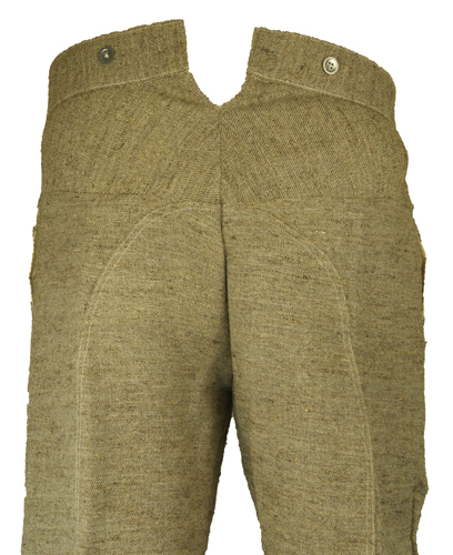Designed to be worn higher than modern pants, these trousers provide both function and historical detail—perfect for long hours in the saddle or on the field.